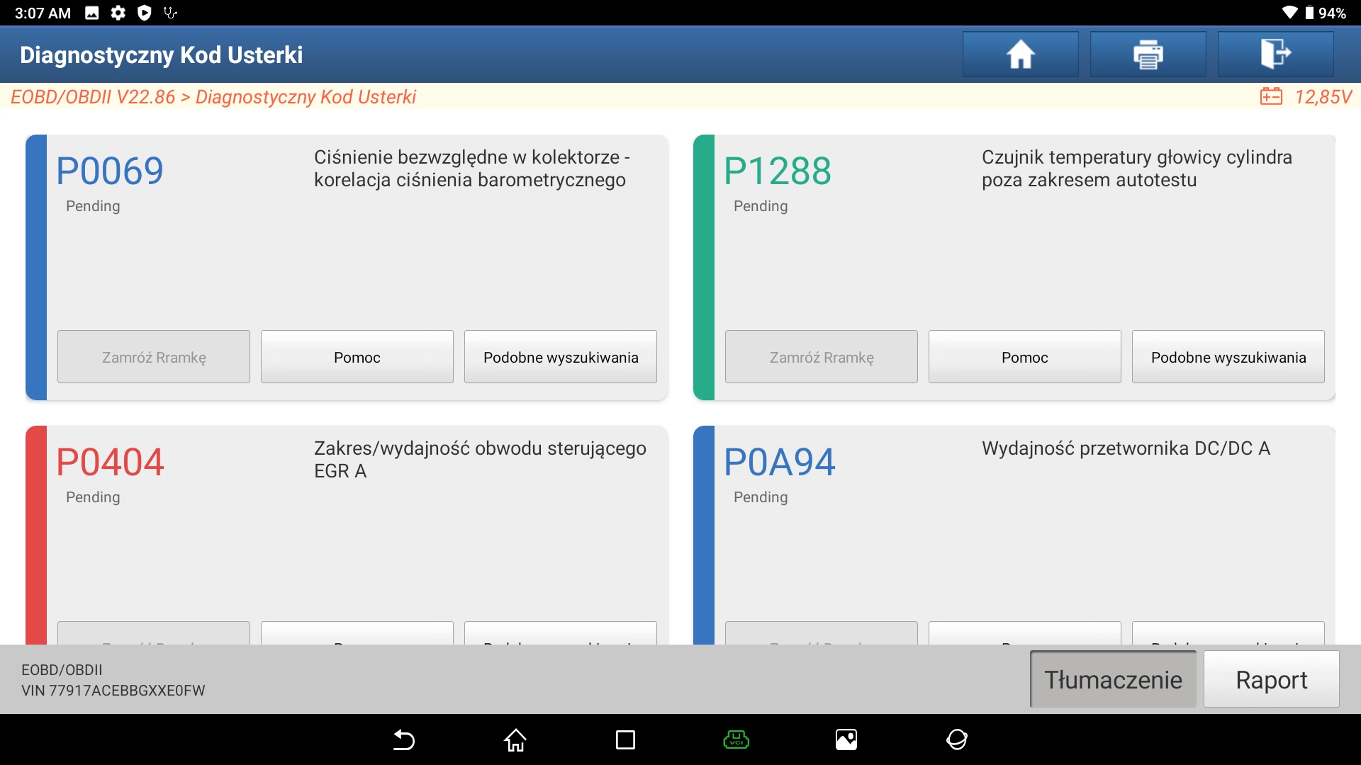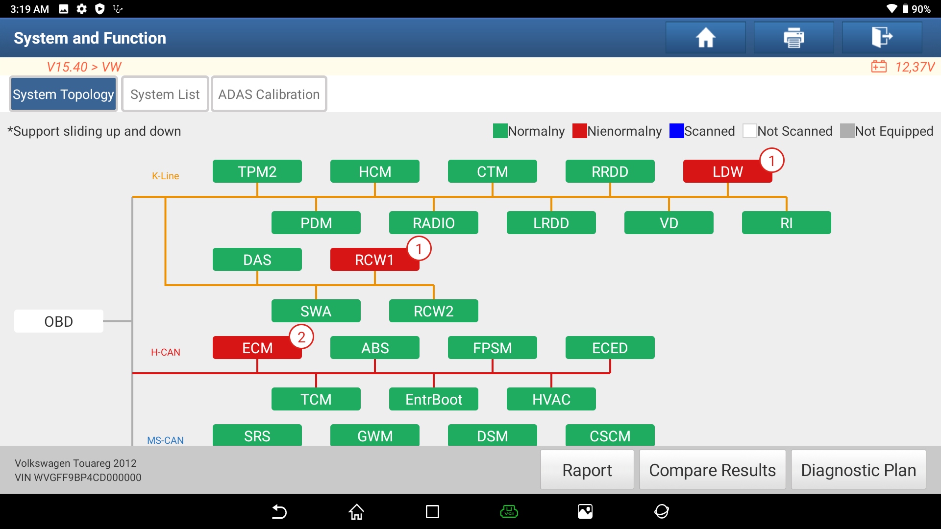- automatyczne skanowanie wszystkich modułów pojazdu